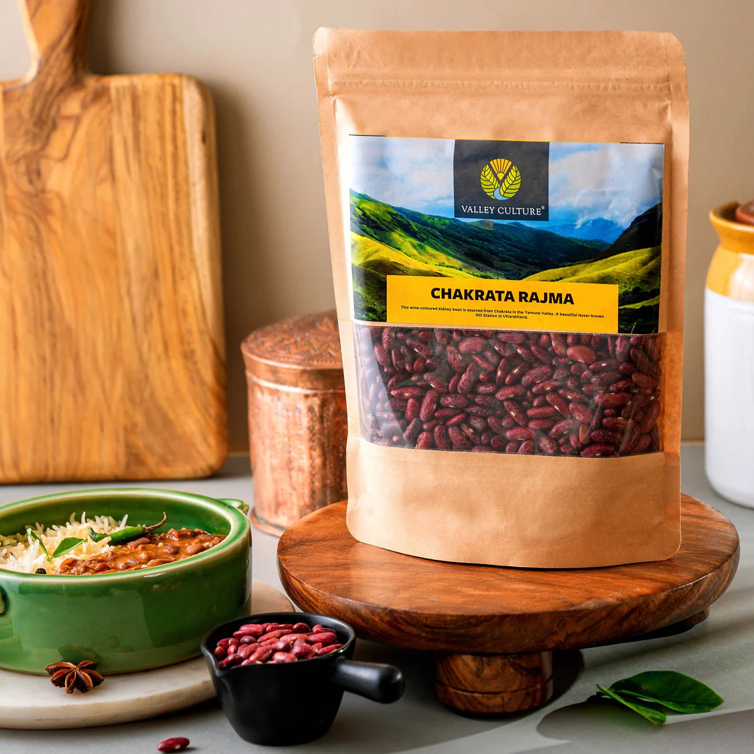 This unique and flavourful wine-colored unpolished kidney bean hails straight from the picturesque hill station of Chakrata, Uttarakhand. Nestled amidst the Himalayas, our Chakrata Rajma is a powerhouse of proteins that packs energy and nutrition.